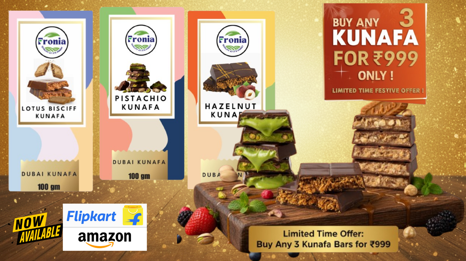 FRONIA Dubai Kunafa Chocolate Bar Trio Pistachio,Hazelnut & Bisciff Flavours (100Gm each) Gourmet Middle Eastern Sweets With Rich Fillings,Crispy Kunafa & Premium Chocolate Luxury Gift Box
