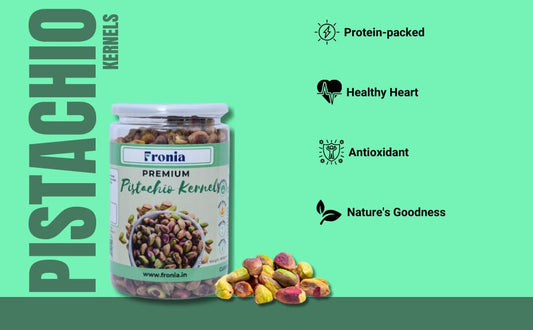 FRONIA Premium Unsalted Pistachio Kernels 250g | Super Crunchy & Delicious | No Gluten | No GMO | Bada Pista | Sada Pista | Dry Fruit, Big Size | Raw, High in Protein | Phosphorus, & Dietary Fibre, Premium Nuts | All Natural | No Preservatives | No Additi