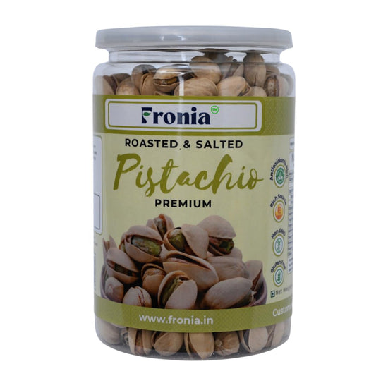 FRONIA Premium Roasted & salted Pistachio With Shell 450g | Super Crunchy & Delicious | No Gluten | No GMO | Bada Pista | Sada Pista | Dry Fruit, Big Size | Raw, High in Protein | Phosphorus, & Dietary Fibre, Premium Nuts | All Natural | No Preservatives
