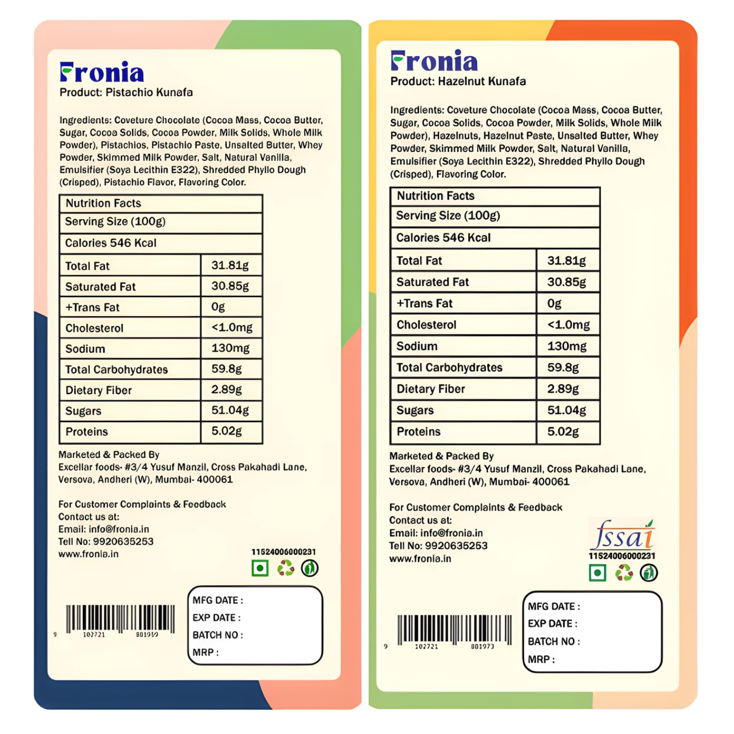 FRONIA Dubai Kunafa Chocolate Bar Duo Pistachio & Hazelnut,2/3 Milk And 1/3 Dark Chocolate,Gourmet Arabic Sweet Pack,Crunchy Kunafa Bars For Gifting,desset lover & Celebrations (100Gms each)